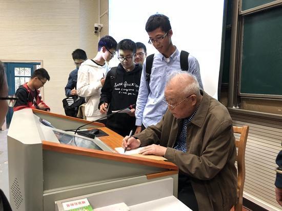 2017年10月12日,讲课完毕后,宁津生给同学们签名