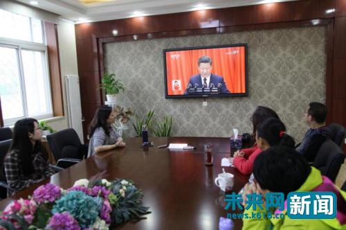 10月18日,北师大附中的老师在一起观看十九大开幕。