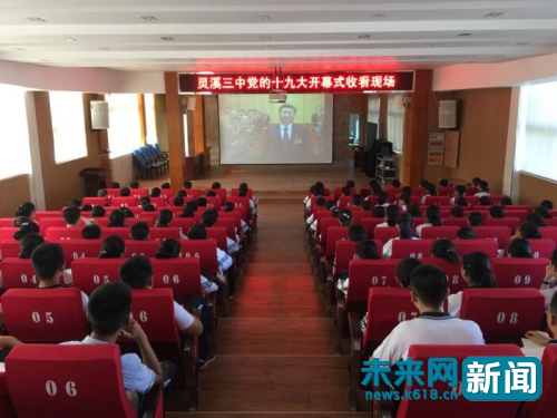 10月18日,温州市灵溪三中党的十九大开幕式收看现场。