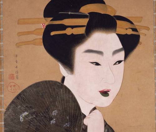 红到发绿的少女。祇園井特所画的浮世绘《京美人夏化粧図》,现藏于東京国立博物館