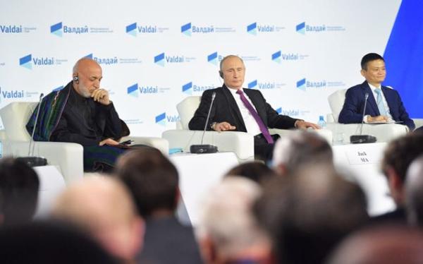 克宫新闻处发布消息称,除了普京、马云,一起在该次全会上发言的还有阿富汗前总统卡尔扎伊等。