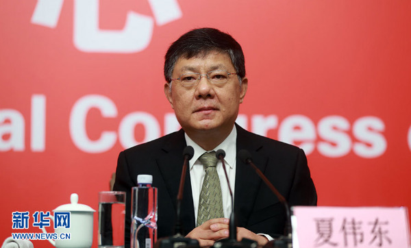 10月20日,十九大新闻中心举行记者会,邀请中宣部、中央文明办、文化部、新闻出版广电总局相关负责人介绍加强思想道德和文化建设情况,并回答记者提问。图为中央文明办专职副主任夏伟东向与会记者介绍情况。新华网 郝广鹏 摄