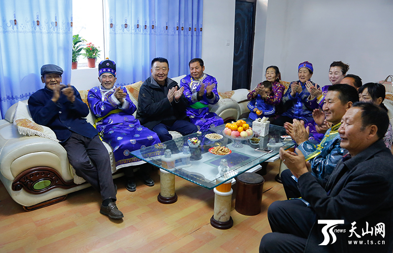 当苏依克·买达力一家收看直播时,远在北疆博尔塔拉蒙古自治州精河县托里镇乌兰旦达盖村的察·巴亚一家也穿着节日的盛装,在刚刚搬进去的抗震安居房里收看开幕会直播。
