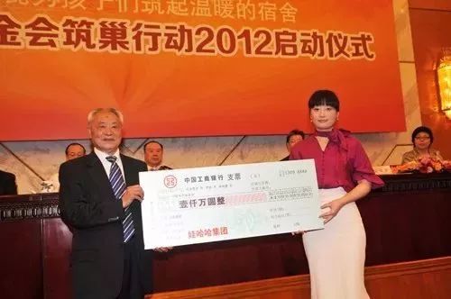 ▲宗馥莉向中国扶贫基金会捐赠一千万现金支票