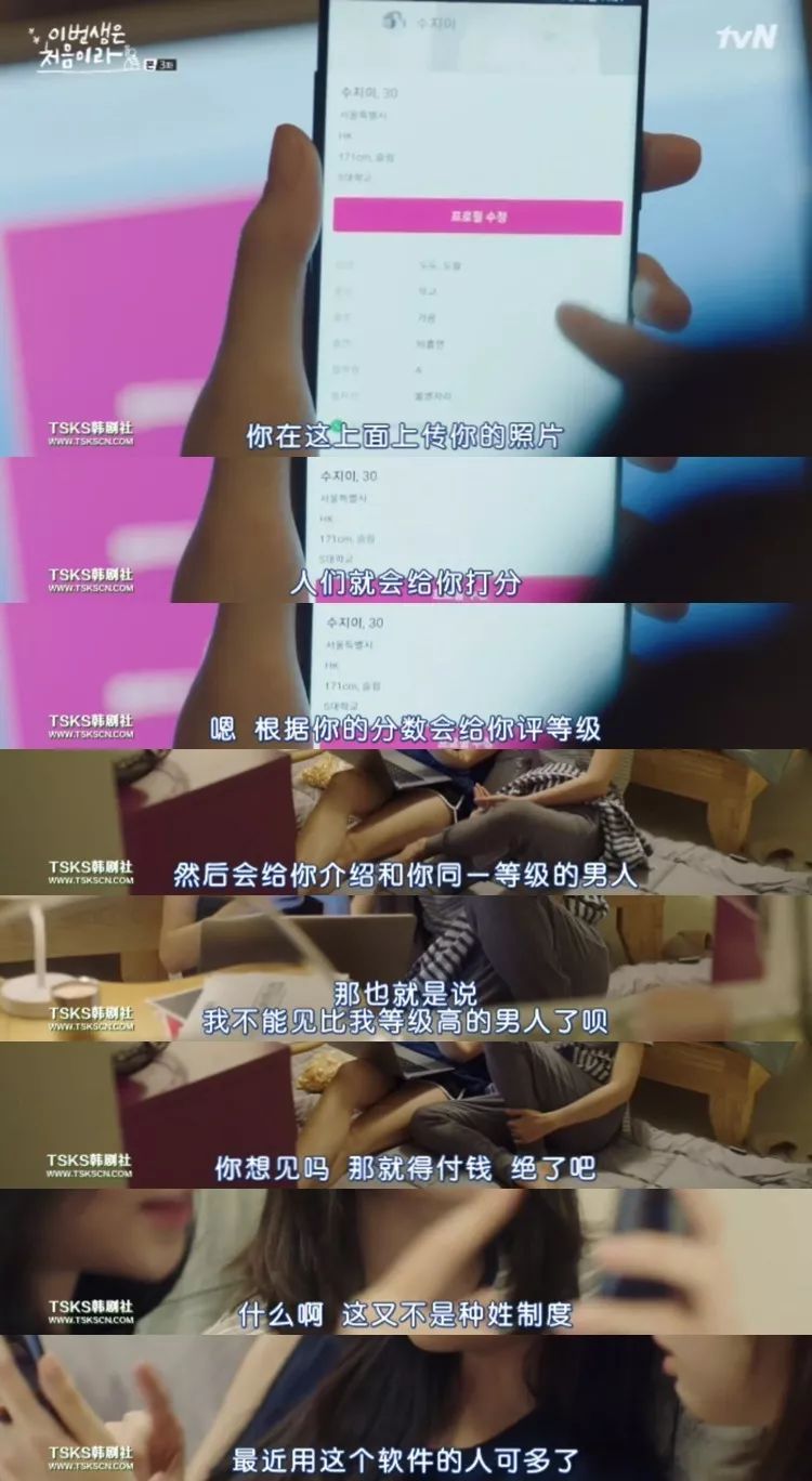 这个看脸打分评等级的APP是100%真实存在的,剧中“交了钱之后,就能和比自己等级高的对象见面”、“名校生评分自然会更高”的台词也不是编剧的脑洞,是韩国人在使用这些“种姓制度”APP的过程中,产生的真实社会现象。