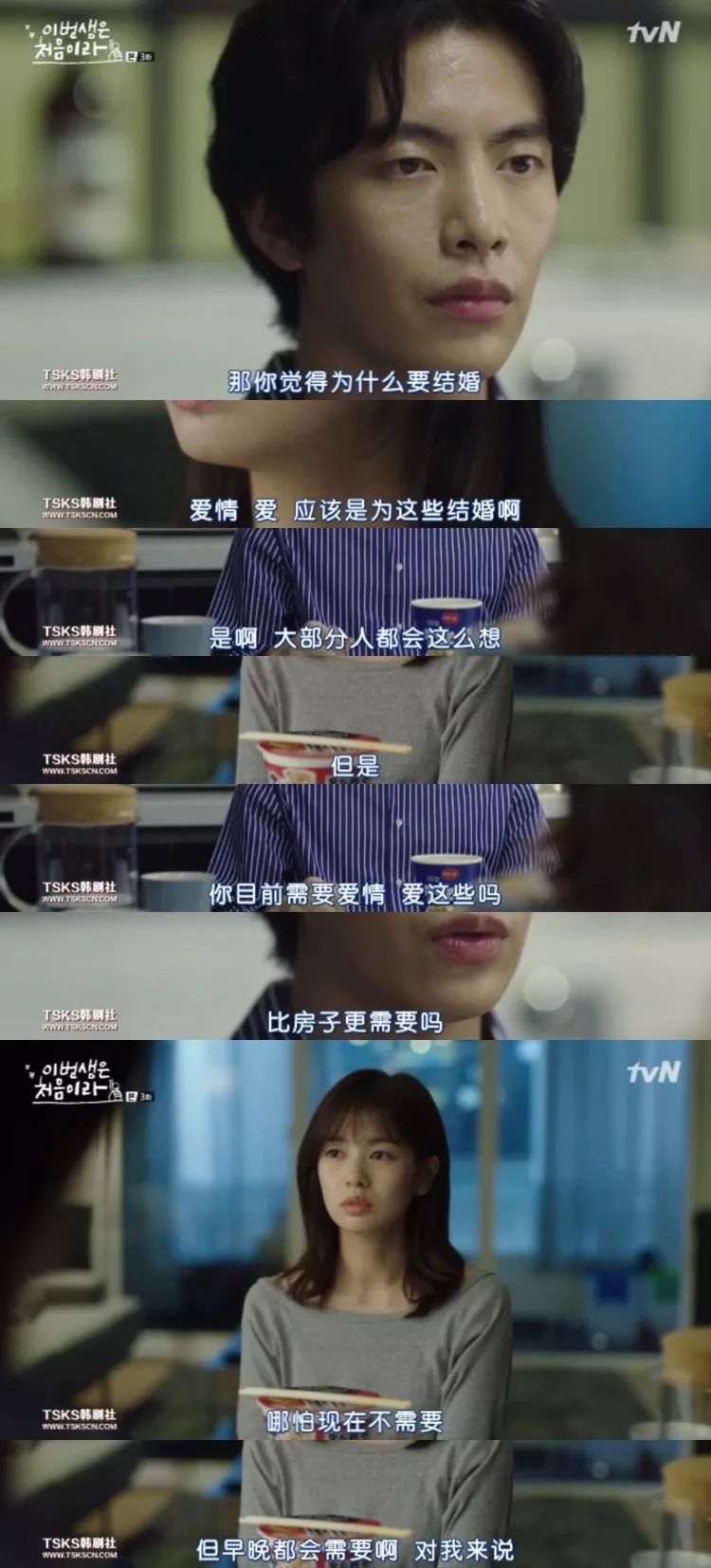尹智昊无家可归,前途渺茫,根本不敢想恋爱和结婚这样奢侈的事情,只想要一个安稳的住处,好让她继续为梦想奋斗;南世熙觉得结婚和育儿是难以负担的累赘,还不如集中照顾好自己。