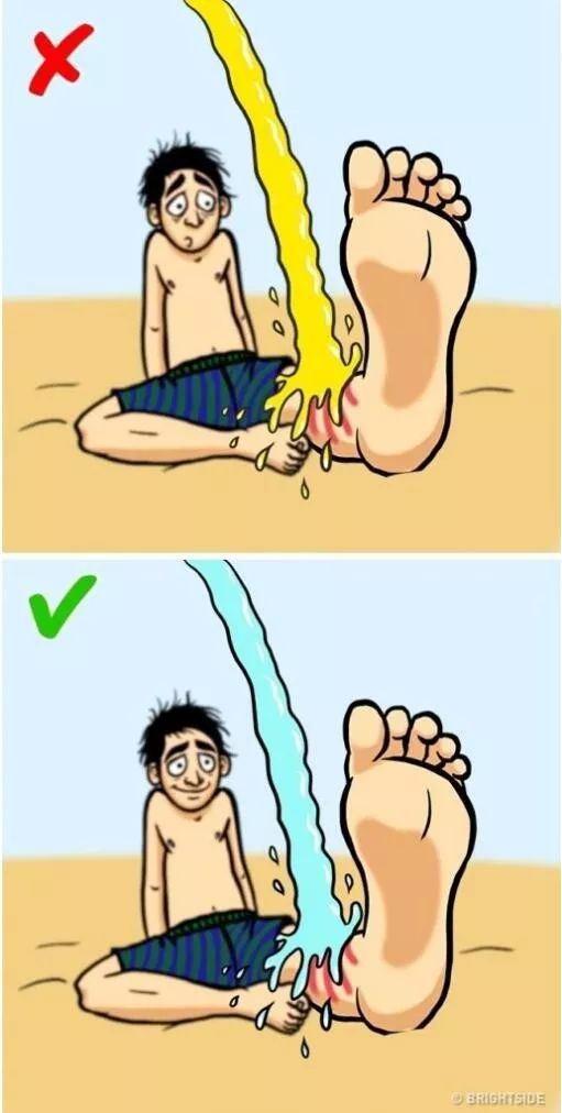被水母螫之后要用盐水清洗,如果用清水反而会让情况更严重,之后用镊子把水母残留下的触手拔除,如果有抗组胺药也可以涂在伤口上