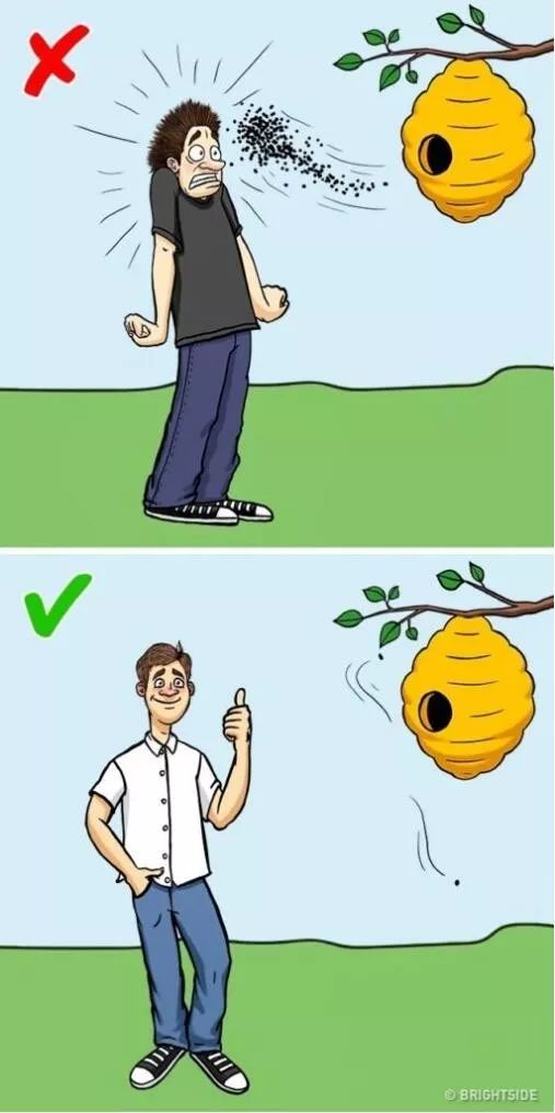 去野外尽量不要穿深色衣服,以免吸引蜜蜂;如果你发现有蜂群或是几只蜜蜂在追你,躲到阴暗的地方,可以迷惑它们