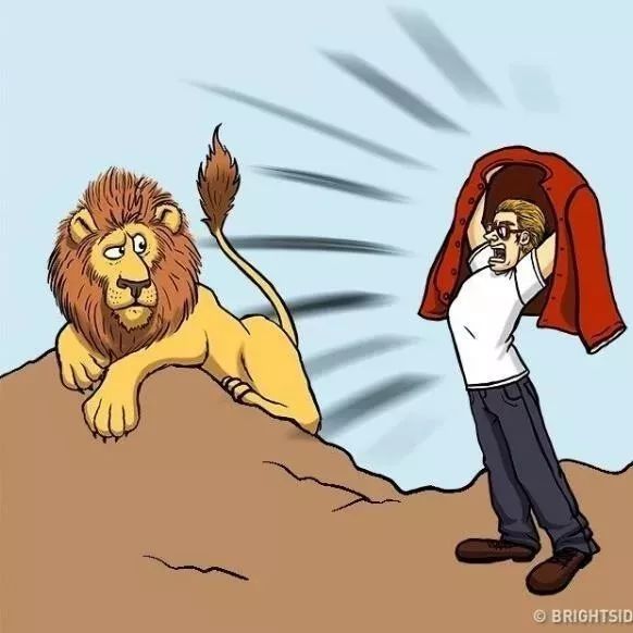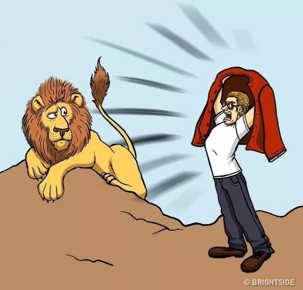 遇到狮子,不要转身逃跑,可以盯着它的眼睛看,也可以用外套披在身上让自己看起来比较庞大,狮子会不敢攻击;也可以大声和狮子说话,并带有手势,避免被认为是猎物。最后它可能觉得你很烦,然后离开