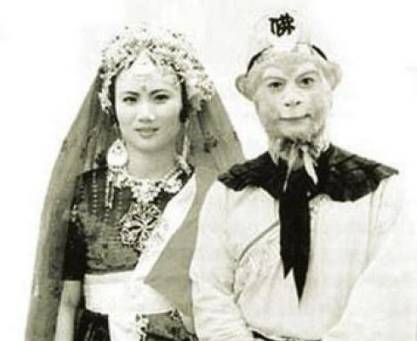 六小龄童和妻子于虹,当时于虹在西游记中扮演天竺国公主的母亲。