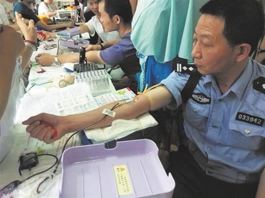 原标题:消防大队长转业当民警 13年炼成“神探”8分钟破案 图为:刘佩敬义务献血 通讯员杨槐柳摄