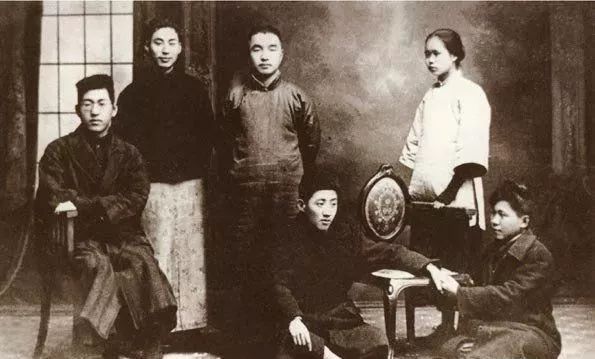 ▲1921年,朱自清(左三)与王静之等人成立晨光文学社