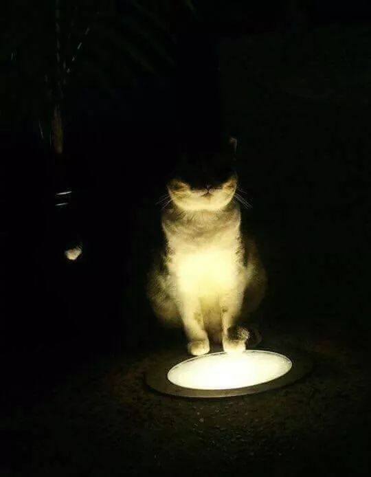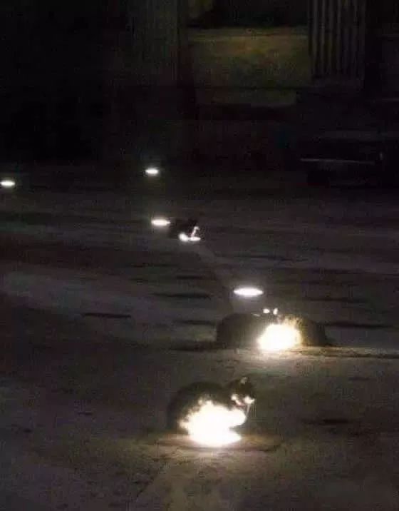 有时候你会看到流浪猫在地灯上“拍鬼片”。