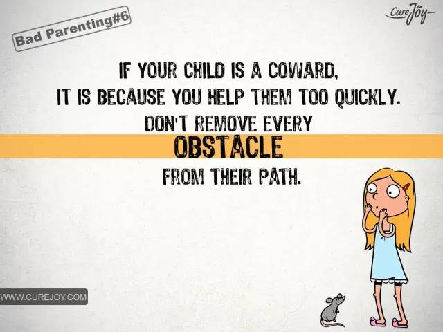 如果你的孩子很懦弱,那其实是因为你帮助他们的速度太快了。不要帮你的孩子清扫他们成长道路上的每一个障碍。