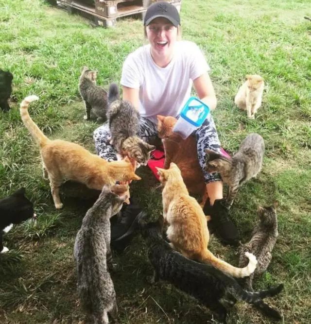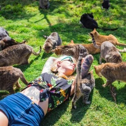 这些猫一点都不怕人,会缠着游客让他们陪着玩耍。