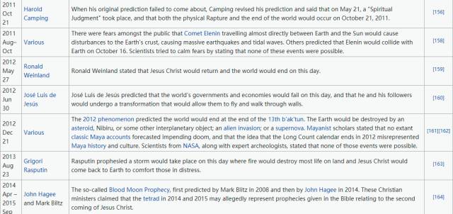 而末日预言,并没有因此销声匿迹,反而愈演愈烈。一搜关键词,各个学说,各种专家,各种宗教关于“什么时候世界末日”还都挺有见解,并且都按照他们的说法,咱们人类基本上每年都得灭绝一次…