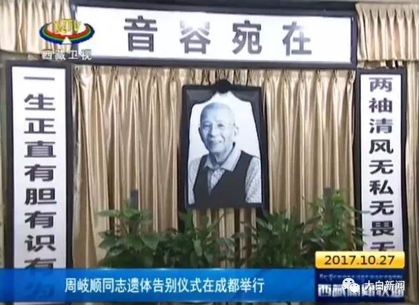 据媒体报道,中国共产党的优秀党员,久经考验的共产主义战士,原西藏自治区政协副主席周岐顺于10月19日23时22分在成都去世,享年85岁。10月23日上午,遗体告别仪式在成都举行。