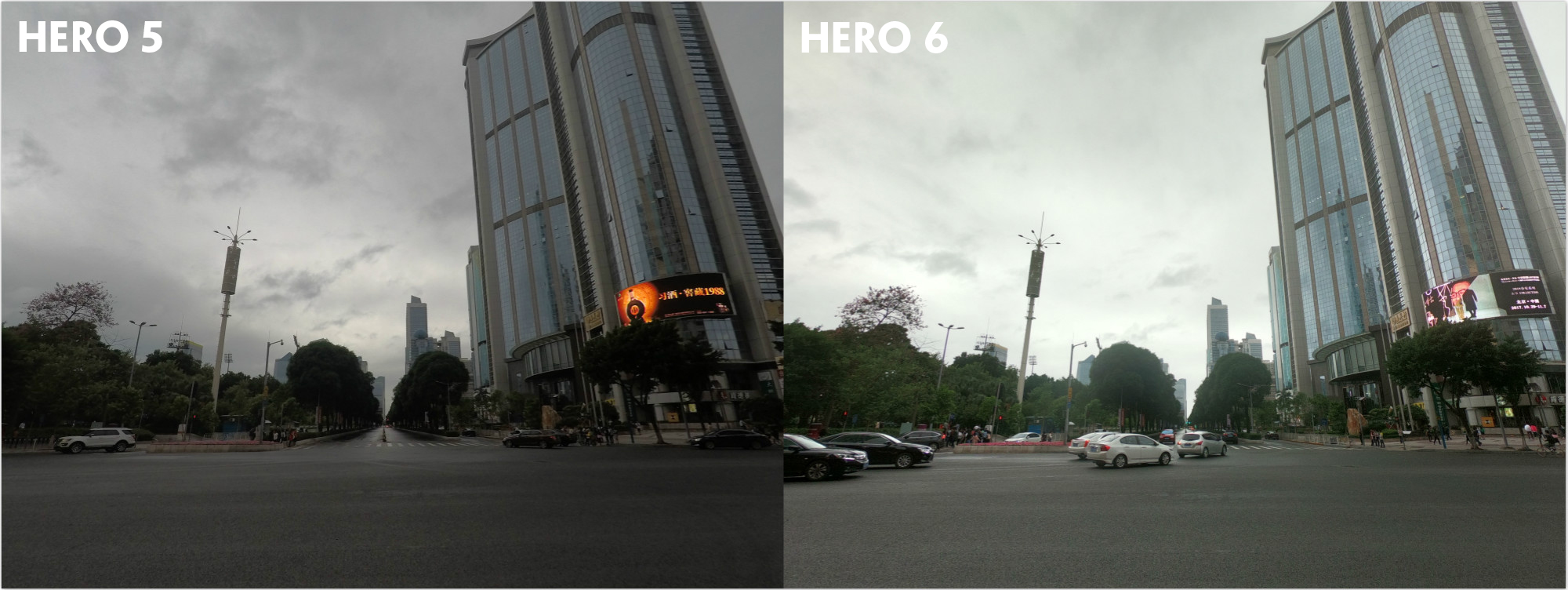 上Hero 5,下Hero 6,后者在少裁切5% 画幅的同时,可以实现远超于Hero 5 的电子防抖性能多说无用,看视频: