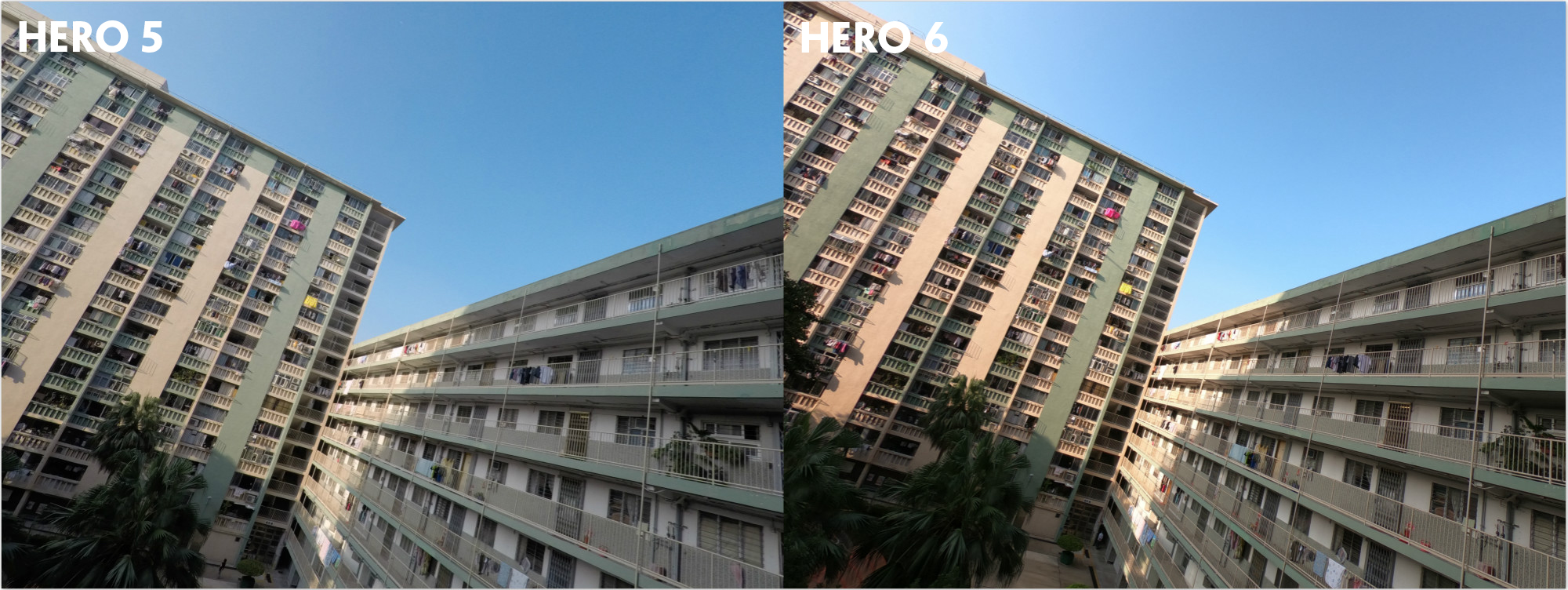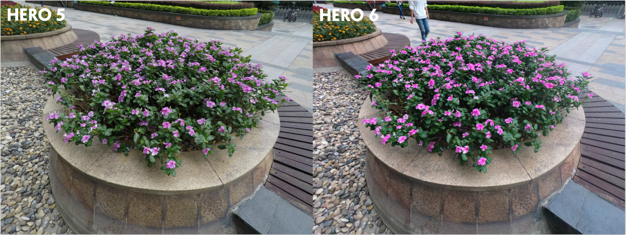 经过众多极限运动爱好者的考验,GoPro 的宽容度、镜头素质都达到了同级里几乎是最高的品质,但是为了尽可能保存画面中高光和暗部的细节,画面对比度多少会受到影响。 Hero 6 最大的惊喜之一乃是在保证宽容度的同时消除了那种朦胧感。无论视频还是照片,Hero 6 的饱和度、对比度都要比Hero 5 有显著的改善,能够很好地还原真实的色彩,哪怕不做任何后期处理,拍出来的照片都可以立刻上网分享。