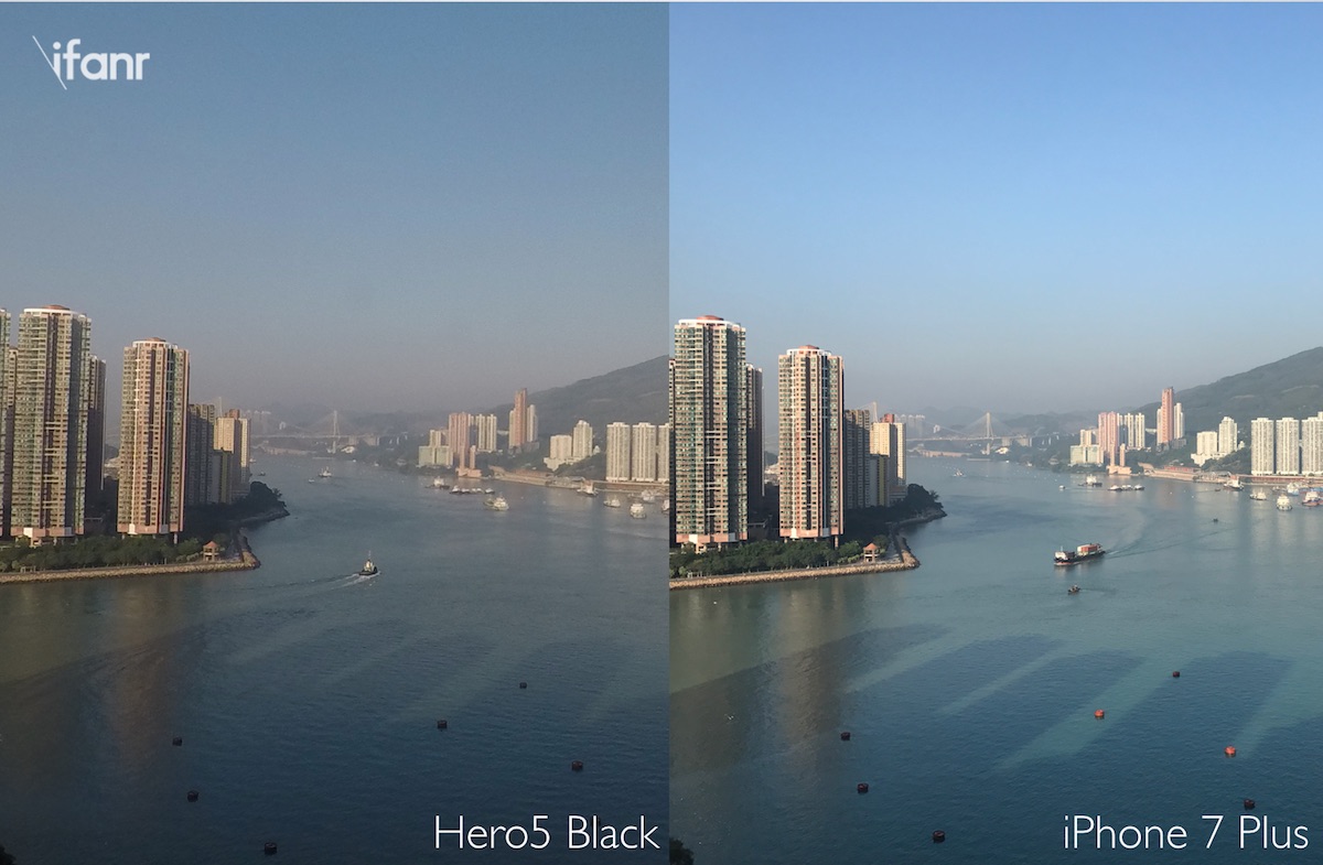 无论GoPro 软件和芯片怎么升级,它都是一个CMOS 只有1/2.3 英寸的小底运动相机,要求不能太高。除此之外GoPro 的超广角镜头、超高宽容度和准确的自动曝光控制都能让它在PK 中战胜不少智能手机。