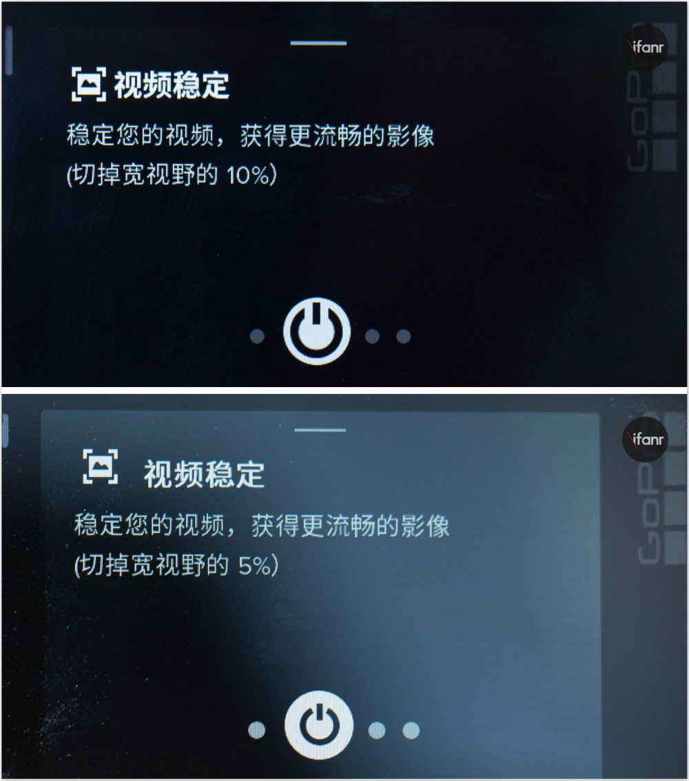 效果很不错,也有一些改进空间。 一般手持云台都有一个「跟随」模式,让相机镜头的转动变得更加平缓自然。以我们手上的飞宇SPG 手持云台为例,我们可以在手机客户端中设置手持云台某个轴的死区,在消除不必要抖动和平缓移动之间取得最佳平衡。 遵循固定算法和参数工作的电子防抖就没有调整空间了,在转动相机直到画面同步转动的过渡不太流畅。 另外,低光环境下由于快门速度降低,帧率也降低,致使相机运动方向发生变化时画面会闪现间歇性的高频振动。 不拘泥于细节的话,这两个小bug 在强大的电子防抖面前几乎不值一提。很在意细节的话也不怕,总比拍出来的视频让人看着头晕眼花更好。GoPro 电子防抖升级的意义不在于替换掉手持云台,而是方便用户在没有或不方便使用手持云台的时候,提高成片质量。 语音命令适合救急,遥控器最好要有安霸和GoPro 的GP1,本质上跟手机上用的高通骁龙835、苹果A10X 一样都是SoC,所以芯片升级提升的不只是GoPro 的照片、视频拍摄性能,还有操控方式、相机运行速度。 相机运行速度其实没有太大提升,毕竟GoPro 的操作本来就非常简单,能让开关机、文件保存、语音控制和照片回放速度快点就不错了。