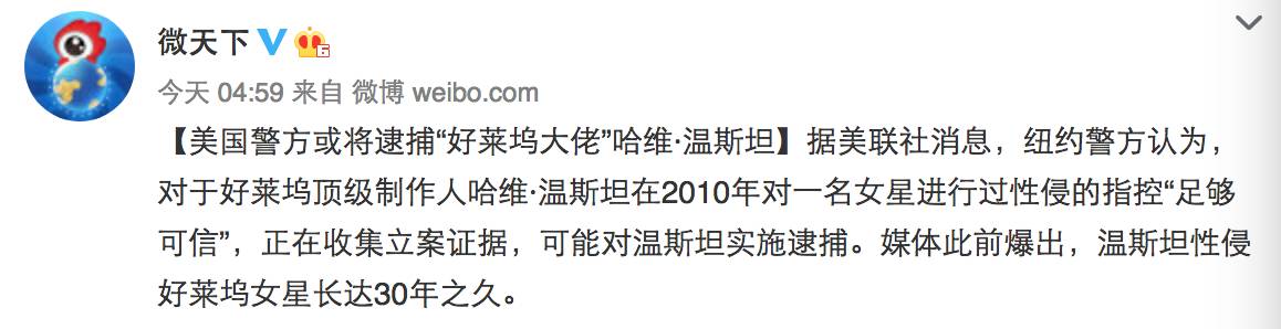 对于职场性骚扰的举报与控诉,已经从韦恩斯坦,蔓延到整个好莱坞,又从好莱坞,蔓延到更多地方