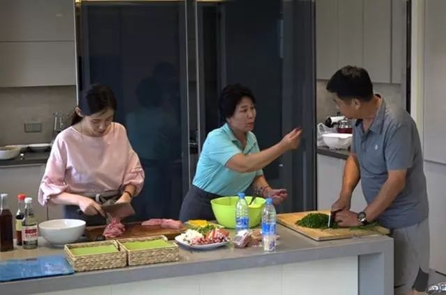 而那一对韩国夫妇却没那么轻松,同时是媳妇做饭,韩国的男人居然什么都不干,公公只等着吃,男方也一点不帮忙,只留女方一个人忙里忙外慌慌张张。