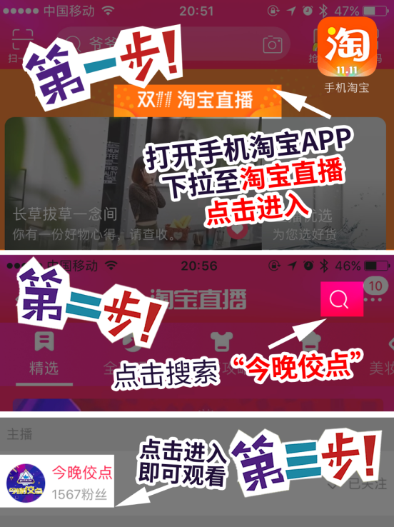 2017年11月6日19点30分,好玩又好看的《今晚佼点》在淘宝直播等你,不见不散,见了也不散哦~打开手机淘宝直播搜索今晚佼点,来和我们见面哦~同时不要忘了关注今晚佼点官博、官方微信,更多精彩资讯提前了解~