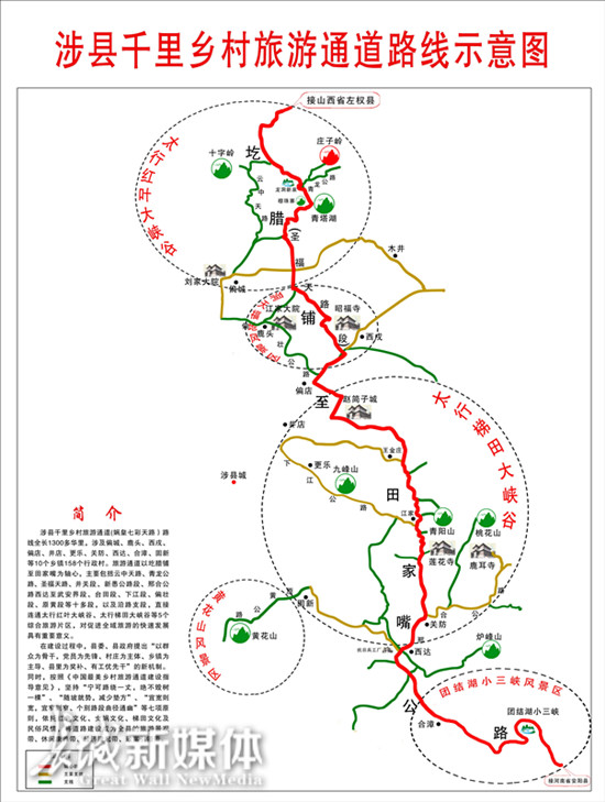 原标题:涉县千里乡村旅游通道通车 百姓喜称幸福大道 涉县千里乡村旅游通道路线示意图。冯晓广供图 涉县