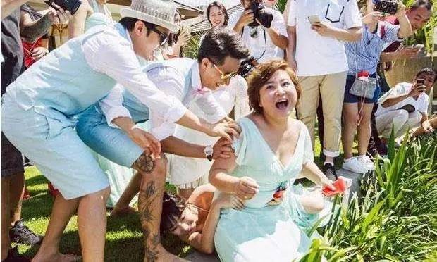 2016年,包贝尔婚礼,伴郎闹场,准备把做伴娘的柳岩扔到水里。当时贾玲看情况不妙,挺身而出坐在衣衫不整的柳岩面前,并直接拿出一叠红包,笑着放话:“这事很简单,红包就能解决。”