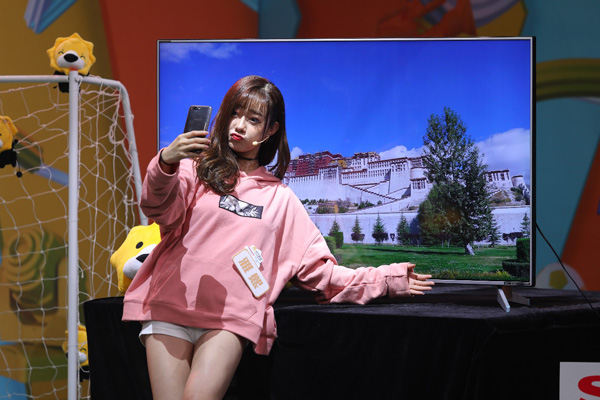 另一边,为了突出夏普智能电视的超逼真场景还原和广色域处理技术,游戏环节特意设置了别出心裁的“假装”系列游戏。将下载好的风景图片投放到夏普智能电视机上,两队成员分别假装在风景图所显示景色进行自拍,照片以假乱真的效果,使网络另一边的宝宝们戏称从此周游世界不是梦!
