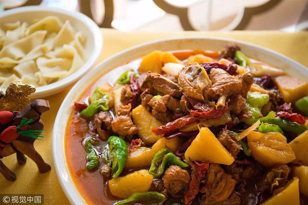 ▍比起内地流行的大盘鸡,新疆本地更受欢迎的是柴窝堡辣子鸡,与四川辣子鸡相差不大