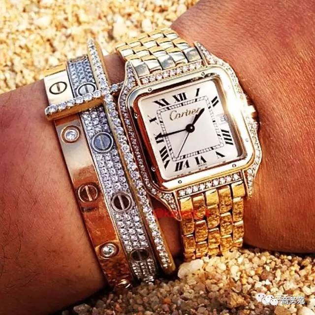 光带表不顶事儿,Cartier钻表和手环才是标配。