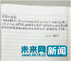 未来网(www.k618.cn 中央新闻媒体)北京11月13日电(记者 韩胜男)我的妈妈是一位快递员,每天起早贪黑,非常辛苦,有时甚至忙起来连饭都不吃,而我只能饿着肚子去学校。晚上妈妈也会很晚回到家,有时连饭都不吃,就早早上床休累(息), 我只到(知道)她送了一天的快递太累了……