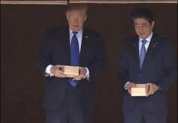 在很多美国人民眼中,他的一切举动都可以是恶搞素材,前些天访问日本时,一开始小勺扬鱼食、后来直接一盒倒下去的行为,又被笑话做成表情包了。