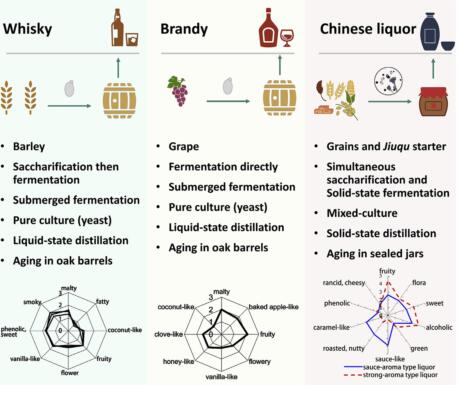 (图:威士忌、白兰地、中国白酒的不同)