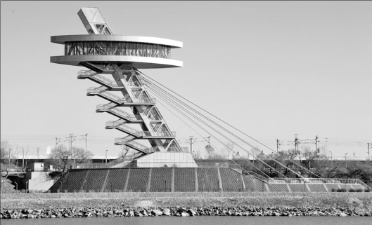 记者在中东铁路公园江北段看到,观光塔已经建设完成,登塔后,松花江两岸的风光尽收眼底。塔身为钢结构,塔高39米,塔身由6根钢柱组成,与地面形成60度角。“观光塔作为中东铁路公园的重要组成部分于2016年6月开工建设,历时16个月建设完成,采用钢结构是对老铁路桥的延续和呼应。观光塔采用8根斜拉钢索则使整体更加牢固,安全性更高。”哈尔滨市建委相关负责人告诉记者,由钢柱围合成的部分是两组斜行观光电梯,电梯斜向行驶,给游客带来不一样的乘坐体验观景感受。供游客步行的观光楼梯从塔身悬挑而出,轻盈而别致。在中东铁路公园内,观光塔成为标志性景观,它把公园的观景流线从二维切换到三维,丰富游客的欣赏体验。