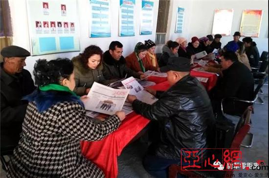 亚心网讯(通讯员 裴卉)11月14日上午,阿牙克村组织村民在农家书屋共同学习党的十九大精神,引导大家充分认识党的十九大召开的重大意义,深刻领会十九大报告的精神实质和丰富内涵,切实把思想和力量统一凝聚到十九大精神上来。