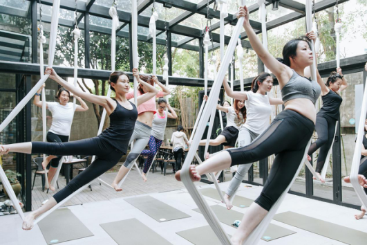 原标题:花王空中瑜伽新体验 秀出健康姿态
