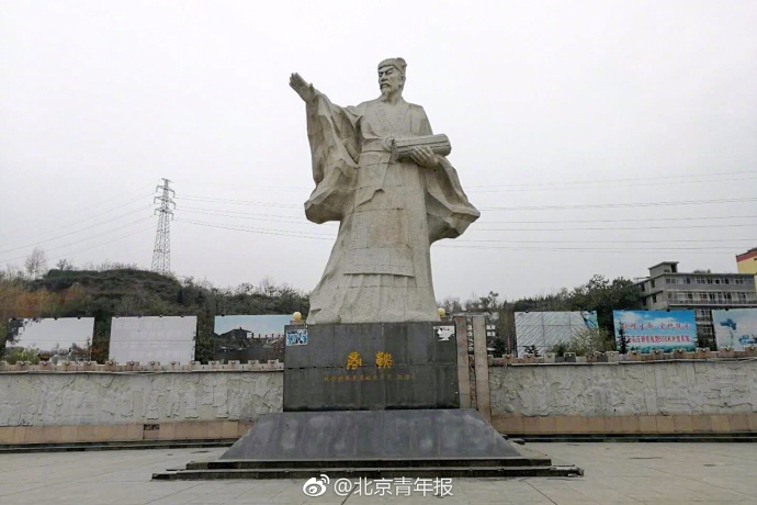 陕西商洛地标性雕塑“商鞅”遭油漆涂鸦