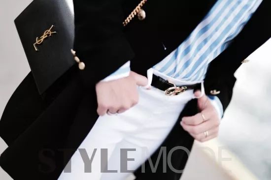 建议可以从皮带下手,毕竟对于平常没有习惯在戴饰品的人来说,基本款的皮带会比较好上手,在款式上可以挑选前卫大胆一点的设计,如金属雕花搭配一件黑连衣裙,马上Disco Good Good!