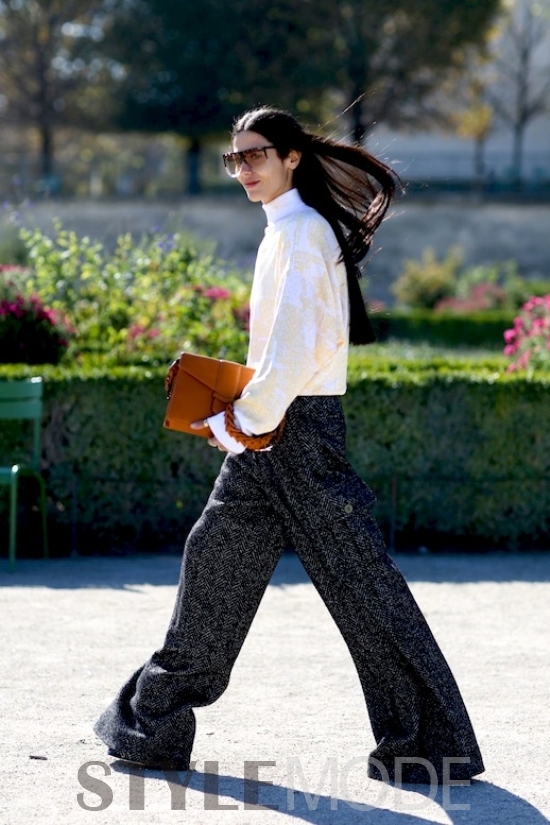 而高腰绝对是关键,可以确保你的裤子不会看起来太沉重,最重要的就是不会让你的腿看起来太短。不妨可以在脚上下功夫,加入长袜等配件丰富整体穿搭,毕竟阔腿裤最害怕就是露出肌肤的面积太大,导致下半身过于单调,因此袜子种类的选择也相当重要。