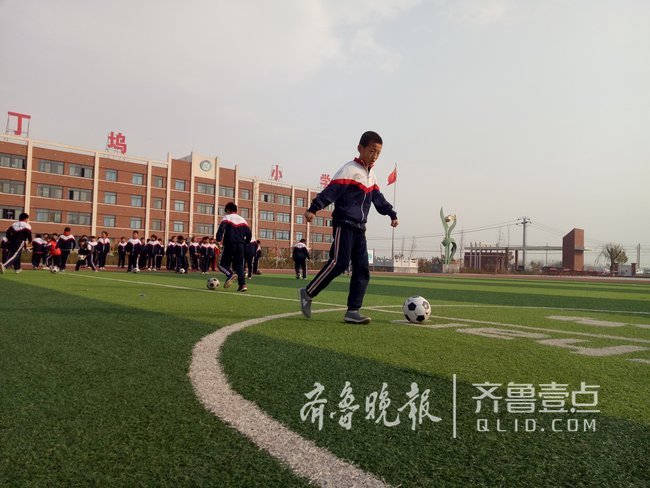 在乐陵市丁邬小学,学生在新建的操场上上足球课。本报记者 尹明亮摄