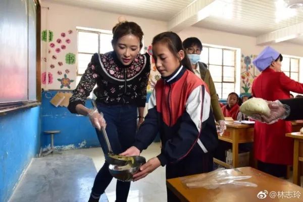 不管是呼吁爱心捐助的她还是弯下腰给小朋友们盛饭的她,看起来都是那么温柔有爱~