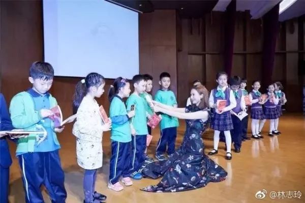 为了能给小朋友拿麦,志玲姐姐似乎都跪下了~一点没有明星架子,亲和力满分!!!