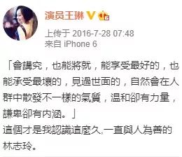 王琳力挺林志玲(图片来源:王琳微博)