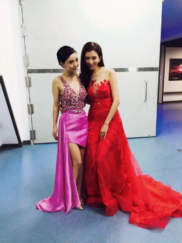 站在身材小巧的郭采洁身边合影,林志玲很礼貌的半蹲下来,避免尴尬。