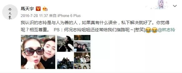 马天宇也在第一时间出来力挺志玲姐姐~这一事件也让我们看到了林志玲在圈中的好人缘。