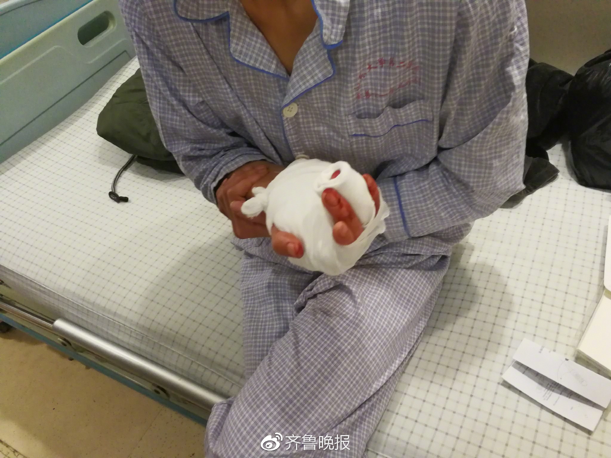 在山大二院,记者见到了受伤的米线店店主。据其介绍,今天上午10点半,他接到了一单美团外卖的订单,10多分钟后,一名美团的骑手来到店里取餐。“我当时正在厨房做饭,他进来要取餐,我就让他等两三分钟,把他推出去了。”店主表示,他当时接了80多单,正忙着做饭,可能言语中有些激动。
