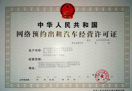 进入深秋的贵州遵义,迎来了万顺叫车分公司的入驻。作为中国未来公共交通出行行业的“独角兽”,万顺叫车遵义分公司为这座西南著名的红色旅游城市带来了一份大礼。2017年11月21日,贵州遵义交通运输管理部门为深圳万顺叫车遵义分公司颁发了“网络预约出租汽车经营许可证”,标志着万顺叫车公司在西南地区的布点再增加一局,而这也是公司开展线下巡游出租车和网约车融合发展战略以来,所获得的第15块网约车经营牌照。